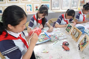 今年暑假,四川省华蓥市组织华蓥中学、双河小学、实验幼儿园等近20所中小学校及幼儿园,集中开办文创坊,并配置专业教师,给小朋友们义务辅导美术、书法、剪纸、石画、泥塑和蓝染、刺绣、编织等10多种文化艺术创作项目,让小朋友接受艺术熏陶,在沉浸式中度过有意义的假期。