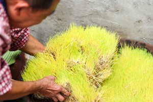 2023年7月20日,在四川省华蓥市阳和镇蔡家湾村五组拍摄的罗云凯培育的用于制作麻糖的谷芽。(邱海鹰)
