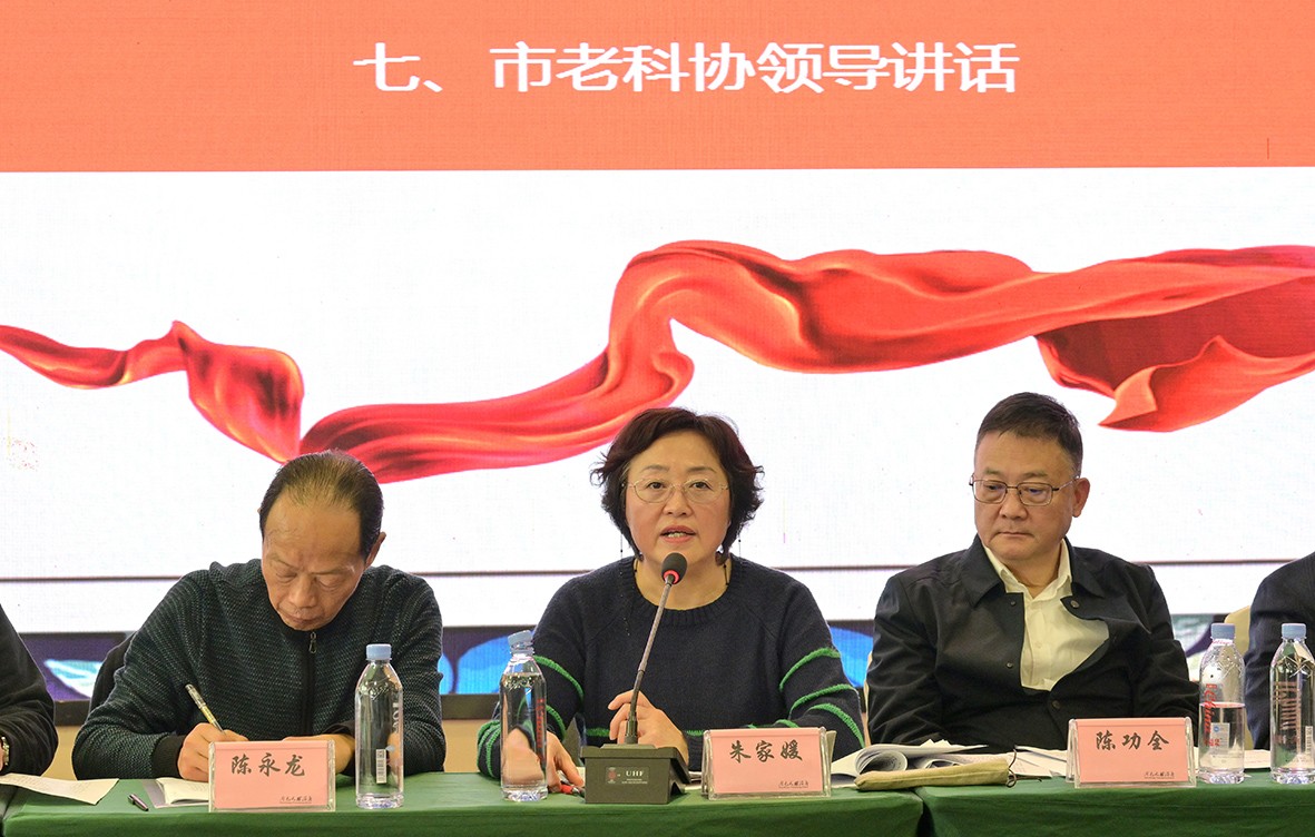 南充市老科协会长朱家媛热情讲话,她说:我是上任不到一个月的新兵,要向在座老会员、老科技工作者学习,紧紧依靠9个分会,在发扬上一届优良传统的基础上,进一步做好老科协工作。南充是教育大市,老科协教育分会的地位作用十分重要。近几年分会认真学习贯彻习总书记对老科协工作重要指示精神,围绕市委市政府工作中心和教育发展需要,充分履行四项基本职能。科技服务有深度。每年送优质教育下乡,解决基层教育教学中的问题和困难,深受欢迎;咨政服务有高度。调研建言得到市委市政府主要领导的肯定性批示;展示夕阳风采有力度。老科技工作者受聘担任电影学院党委书记,辅导年青教师、关爱儿童成长等工作成效明显;基础建设有温度,在分会下建立了基础教育、成人教育、职业教育、办公室等机构,各施其职见实效。