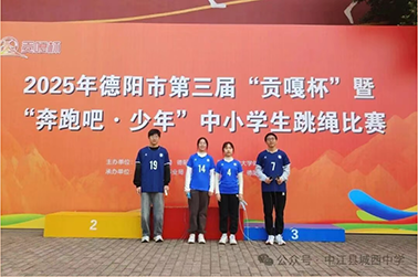 2025年德阳市第三届“贡嘎杯”暨“奔跑吧·少年”中小学生跳绳比赛圆满结束,城西中学参赛同学胜利而归。