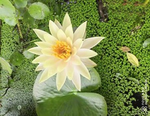 水面满生青浮萍,睡莲独花叶绿新。