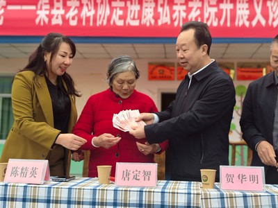 活动现场,渠县老科协会长唐定智除了预祝福老人们节日快乐外,还送上了老科协的爱心捐款,委托院方给老人们买一些适用的生活物品。渠县老科协医卫活动组赵明才组长充分发挥“银龄智库”优势:组织医疗专家团队为老人提供血压测量、慢阻肺防治等健康服务,杨树才主任医师的《秋冬季安全过冬指南》与王一成副主任医师的《防跌倒攻略》等微科普实用知识讲座,同时发放了健康科普宣传资料,将科学知识转化为“健康护身符”,让老人们感受到“科技有温度,夕阳更灿烂”的深意。