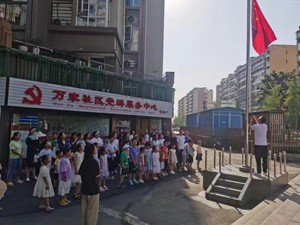 开班仪式开始之前,社区党委副书记、关工委主任万勇带领孩子们在万家社区党群服务中心举行了升旗仪式。